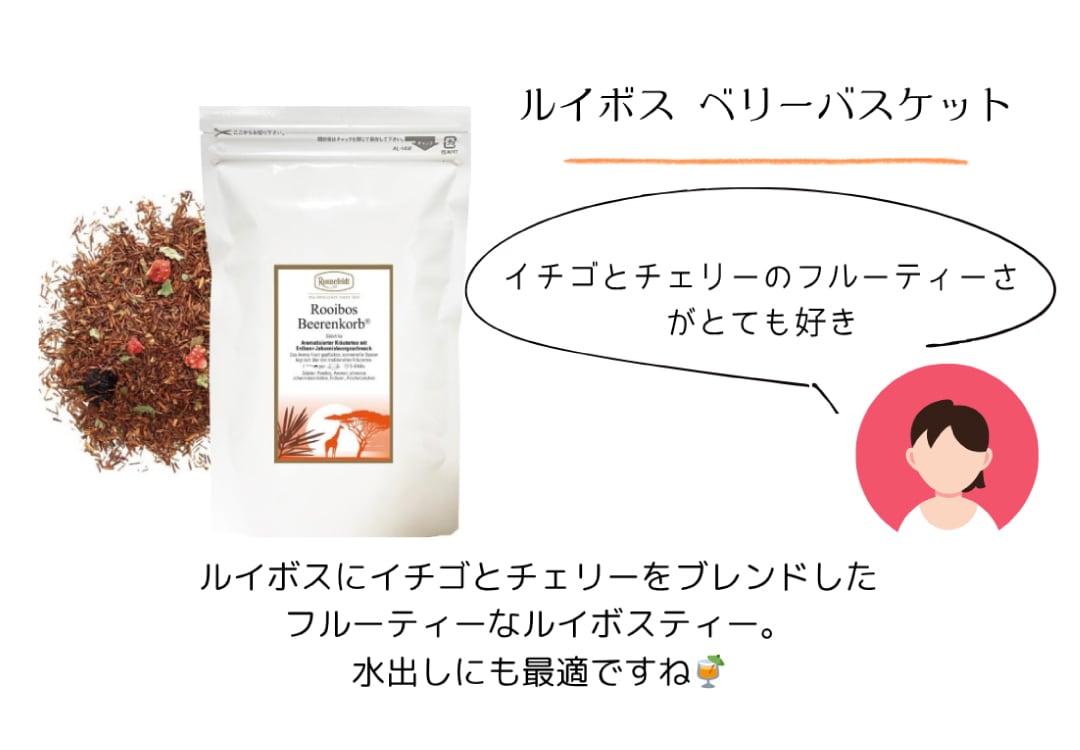 ルイボスにイチゴとチェリーをブレンドしたフルーティーなティー...